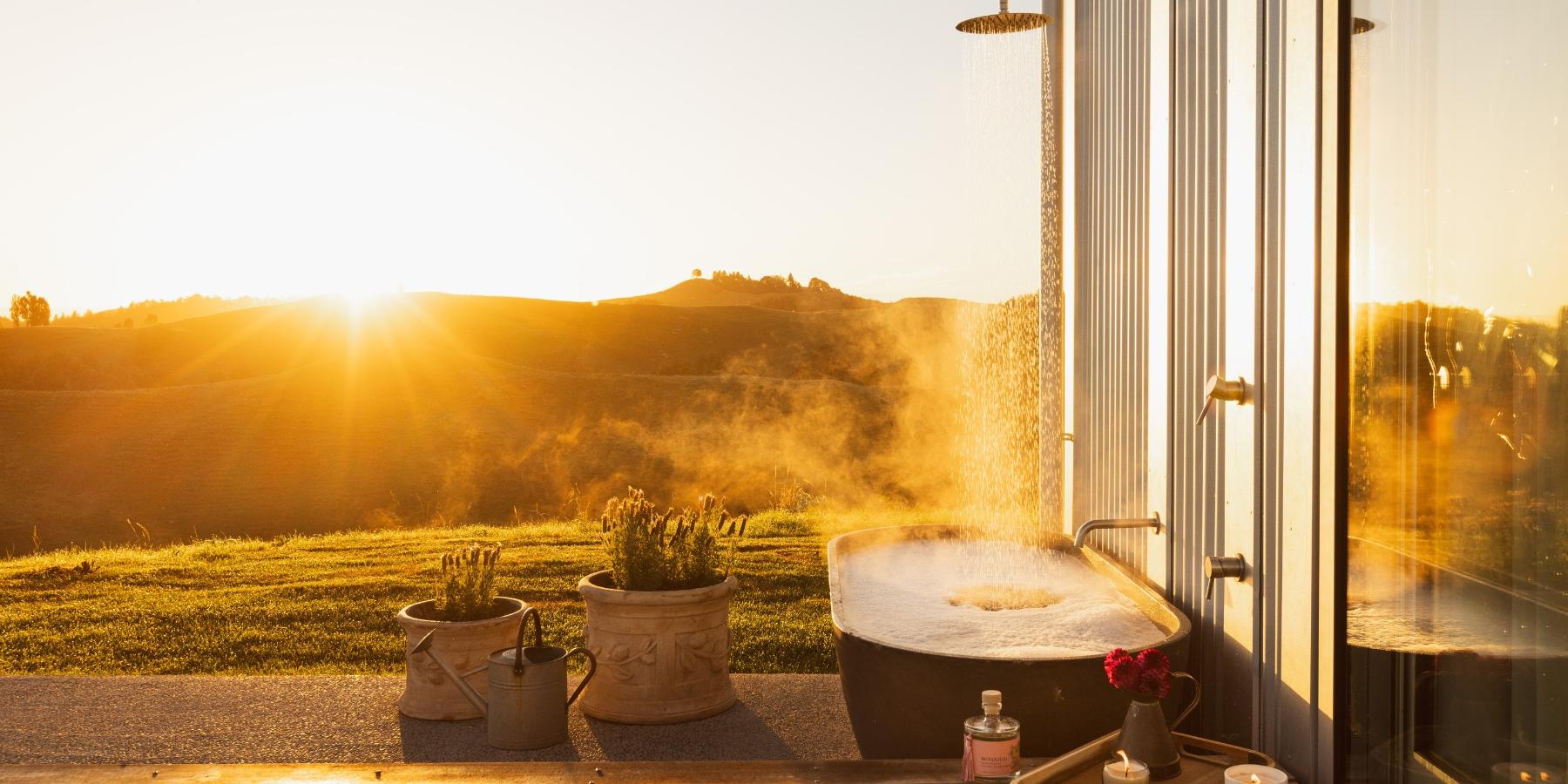 Outdoor bath and shower, to soak in with your morning coffee as you watch the sunrise, or under the stars.